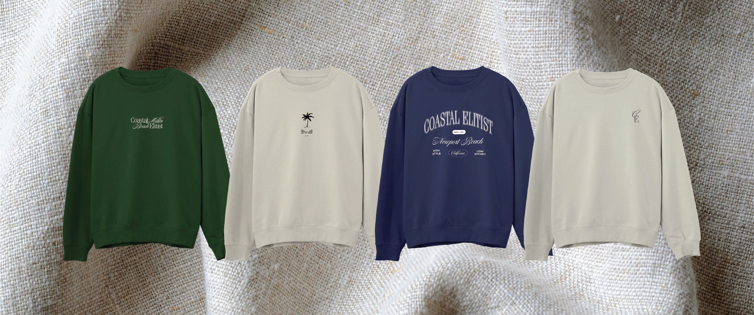 Coastal Elitist was developed as a cohesive lifestyle apparel system built around restrained typography and illustration. Typography and illustration were treated as modular elements, allowing graphics to scale naturally across tees and fleece while maintaining a consistent tone. The system prioritizes wearability and longevity, creating apparel that feels effortless and familiar rather than trend-driven or overly designed.