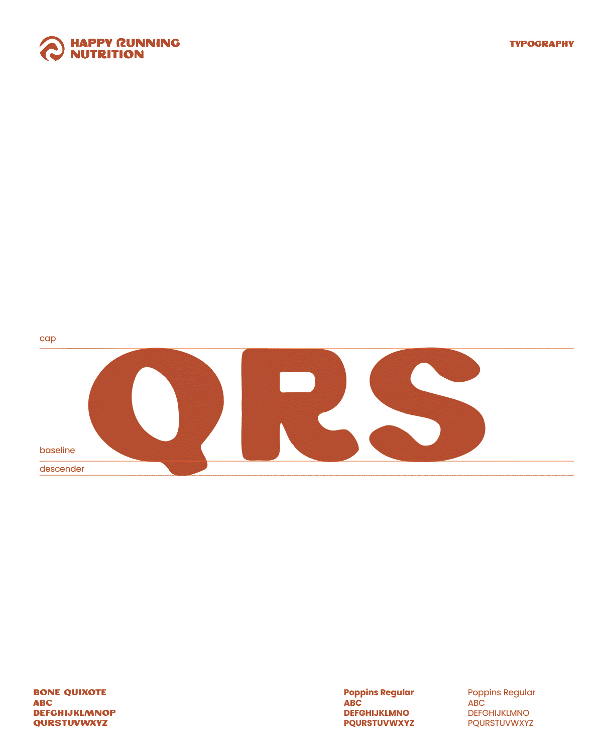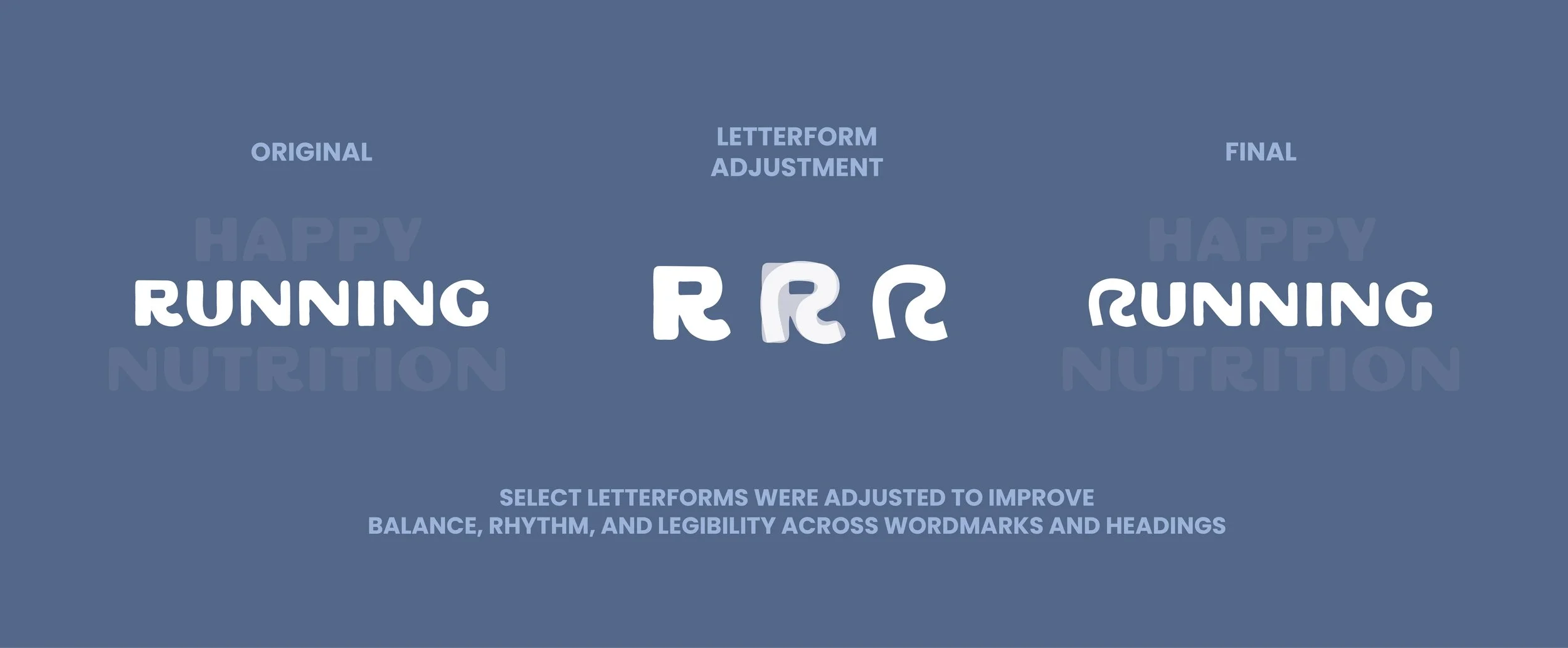 The typography for Happy Running Nutrition was built to feel energetic, optimistic, and human while maintaining clarity. Hierarchy plays a central role in guiding runners quickly to key information, while expressive headline styles are paired with straightforward body copy to balance personality with legibility. The system was designed to scale across packaging, social, and web environments while preserving a sense of momentum and accessibility.